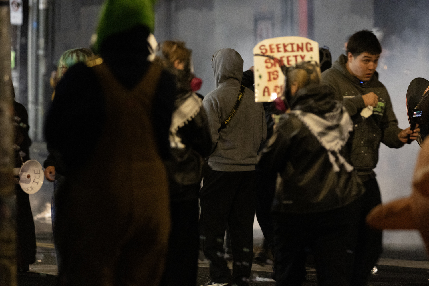 Protestors outside Portland Ice Facility